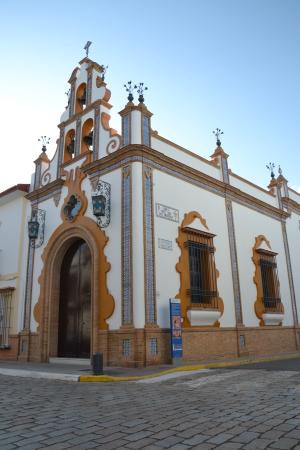Construida entre los años 1969 y 1970 bajo la dirección artística de Pedro Pérez Flores. Su fachada presenta matices de la arquitectura regionalista de principios del S.XX tales como muros encalados, detalles en ladrillo y azulejos dicromáticos. En su interior proliferan todo un conjunto de pilastras, vidrieras, herrajes y pinturas las cuales envuelven un camarín de mármol rojo y molduras de madera dorada en el que se encuentra La Cruz. Dicha cruz se encuentra revestida con un traje de plata repujada de gran riqueza.