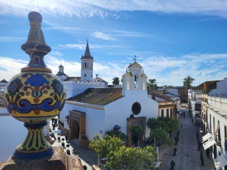 El casco histórico de la localidad de La Palma del Condado está compuesto por una bella y armónica organización de fachadas simétricas de 1 o 2 plantas de altura. La mayoría fueron construidas en los siglos XIX y XX en ladrillo. La mejor representación de estas casas se encuentra en torno a la Calle Real, a la Iglesia Parroquial y Plaza de España.