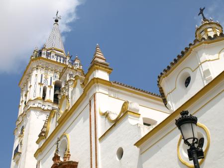 Construida en 1768 sobre una antigua iglesia parroquial de estilo mudéjar que fue derribada en 1755 por el Terremoto de Lisboa, constituye uno de los exponentes más representativos del Barroco tardío sevillano del siglo XVIII. El arquitecto Pedro de Silva se hizo cargo de casi toda la obra, apoyándose siempre en el alarife local, Francisco Díaz Pinto. Destaca en ella su fachada principal, con una monumental portada retablo barroca realizada en ladrillo visto, que contrasta con el blanco de la cal del paramento. Otros de los elementos más destacados es su elegante torre de planta cuadrada recubierta por una trama ajedrezada de azulejos. En su interior la iglesia presenta un estilo barroco más sereno con algunos elementos de estilo neoclásico. La mayor parte de su patrimonio artístico es posterior a la Guerra Civil, ya que esta iglesia fue incendiada durante la contienda, perdiéndose su valioso archivo y gran parte de su patrimonio artístico.